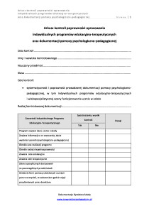 - Arkusz kontroli poprawności opracowania indywidualnych programów edukacyjno-terapeutycznych oraz dokumentacji pomocy psychologiczno-pedagogicznej