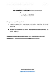 Plan pracy Szkoły Podstawowej na rok szkolny 2025/2026