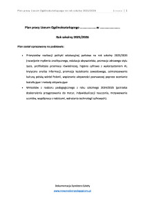 Plan pracy Liceum Ogólnokształcącego na rok szkolny 2025/2026