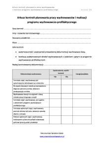 Arkusz kontroli planowania pracy wychowawców i realizacji programu wychowawczo-profilaktycznego
