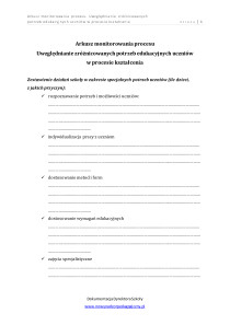 Arkusz monitorowania procesu. Uwzględnianie zróżnicowanych potrzeb edukacyjnych