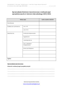 Sprawozdanie ilościowe i merytoryczne z realizacji zajęć specjalistycznych w I okresie rok