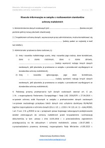Klauzula informacyjna w związku z realizowaniem standardów ochrony małoletnich