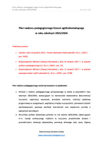 Plan nadzoru pedagogicznego w liceum ogólnokształcącym rok szkolny 2025/2026