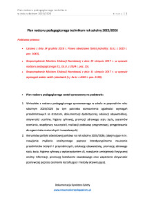 Plan nadzoru pedagogicznego w technikum rok szkolny 2025/2026