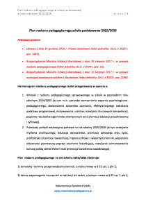 Plan nadzoru pedagogicznego w szkole podstawowej rok szkolny 2025/2026
