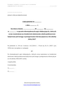 Zarządzenie dyrektora w sprawie ocen ze świadectwa