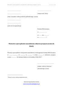 Wniosek o sporządzenie uzasadnienia odmowy przyjęcia ucznia
