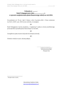 Uchwała Rady Pedagogicznej w sprawie zaopiniowania planu finansowego szkoły na rok 2026
