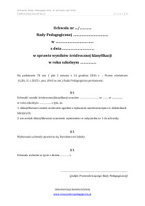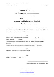 Uchwała Rady Pedagogicznej w sprawie wyników klasyfikacji rocznej uczniów