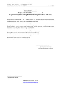 Uchwała Rady Rodziców w sprawie zaopiniowania planu finansowego